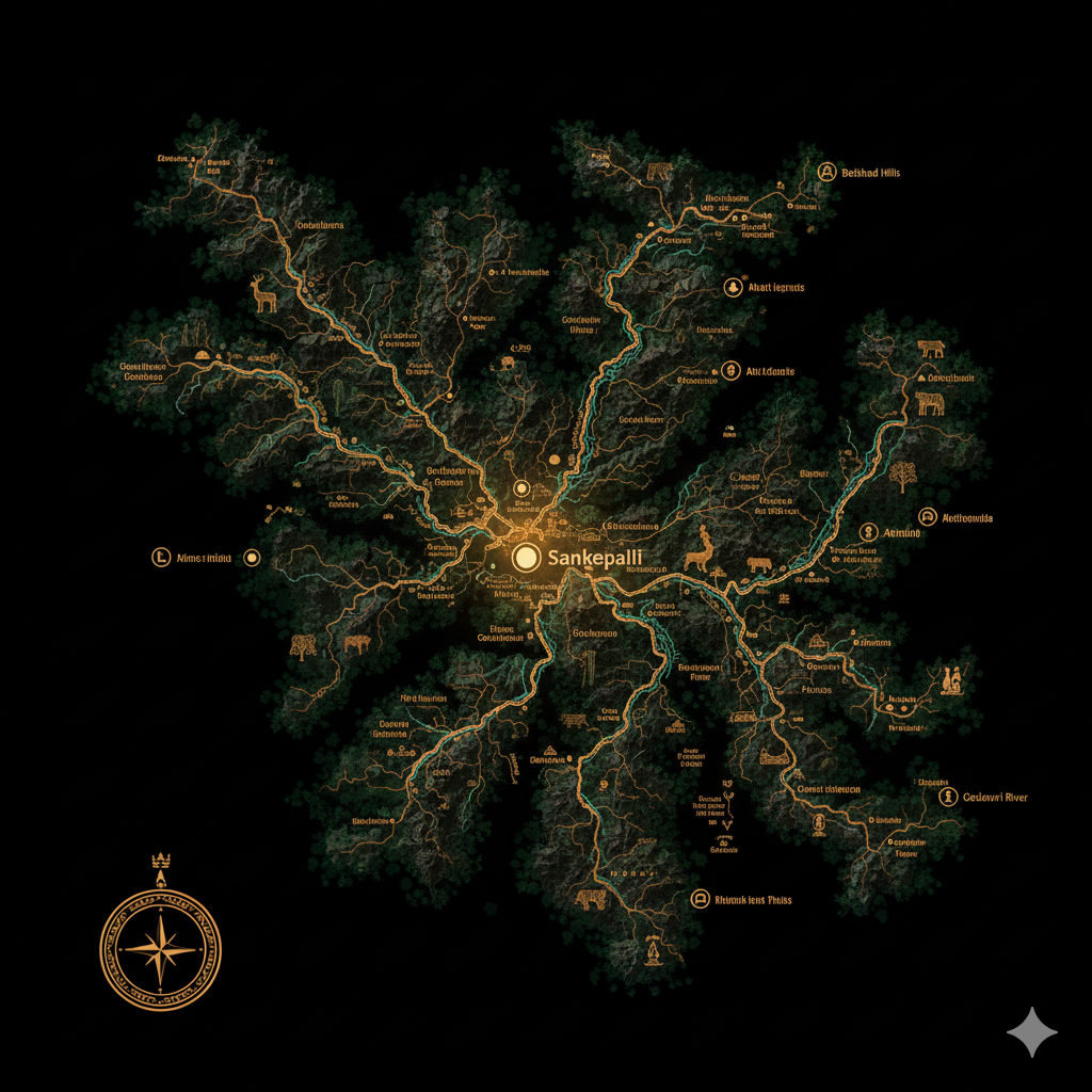 Gallery Visual Gallery of Komaram Bheem’s Life, Legacy, and Tribal Resistance Origins Early life in forests shaped his identity, values, and resistance against oppression. Uprising Tribal unity rose as Bheem challenged injustice and inspired organized resistance Resistance Guerrilla struggle defended forests, land, and dignity against Nizam’s forces. Sacrifice His martyrdom strengthened the movement and transformed loss into lasting inspiration. Legacy Ideals of Jal, Jangal, Zameen continue guiding tribal rights movements today. Remembrance Memorials, stories, and culture keep Komaram Bheem’s spirit alive. Maps Depicting Komaram Bheem’s Movement and Areas of Resistance Maps Depicting Komaram Bheem’s Movement and Areas of Resistance
