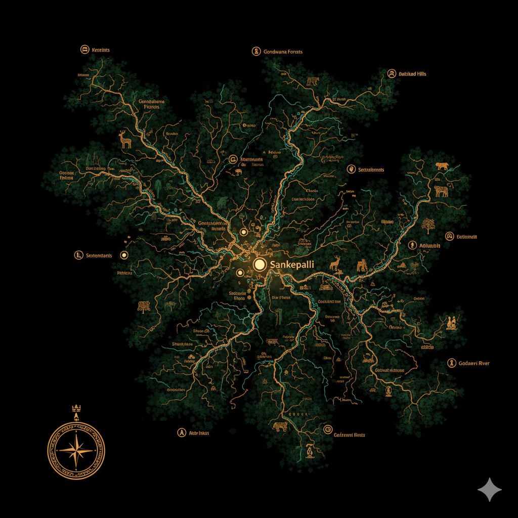 Gallery Visual Gallery of Komaram Bheem’s Life, Legacy, and Tribal Resistance Origins Early life in forests shaped his identity, values, and resistance against oppression. Uprising Tribal unity rose as Bheem challenged injustice and inspired organized resistance Resistance Guerrilla struggle defended forests, land, and dignity against Nizam’s forces. Sacrifice His martyrdom strengthened the movement and transformed loss into lasting inspiration. Legacy Ideals of Jal, Jangal, Zameen continue guiding tribal rights movements today. Remembrance Memorials, stories, and culture keep Komaram Bheem’s spirit alive. Maps Depicting Komaram Bheem’s Movement and Areas of Resistance Maps Depicting Komaram Bheem’s Movement and Areas of Resistance